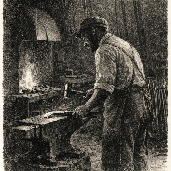 Illustration of a 19th-century African American blacksmith, representing the type of work Henry Brevard likely performed.